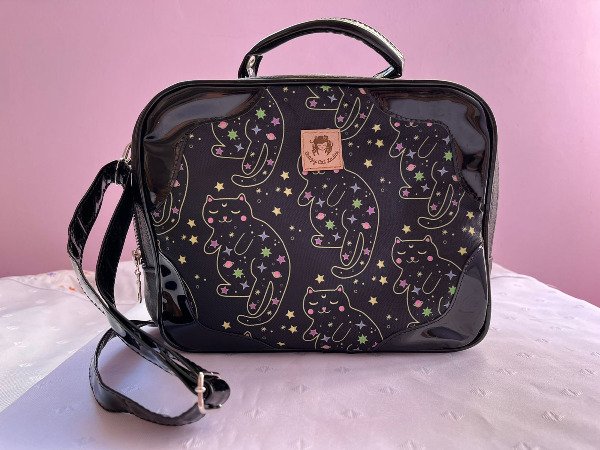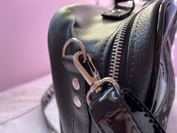 Cartera / bandolera realizada en PU con detalles,manija y correa de charol.