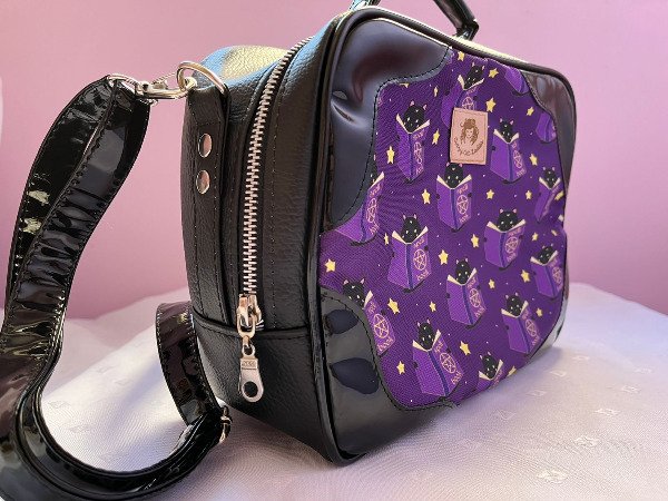 Cartera / bandolera realizada en PU con detalles,manija y correa de charol.