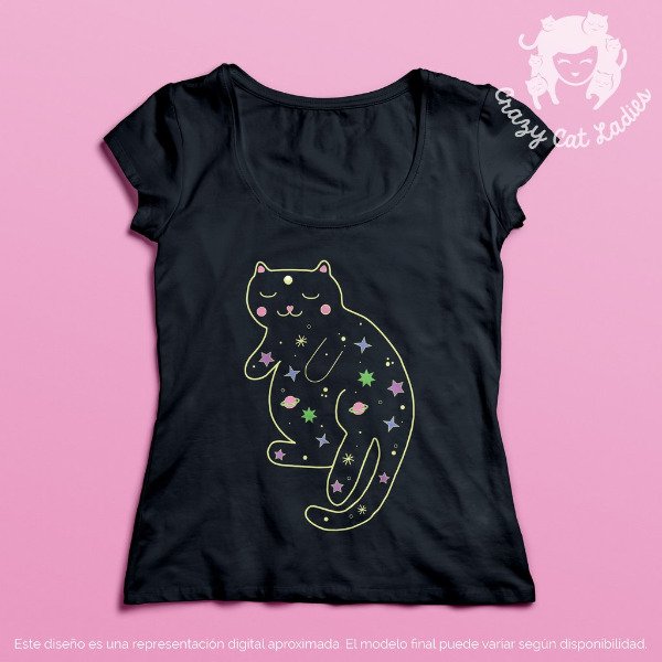 Remera Gato Cósmico, corte entallado
