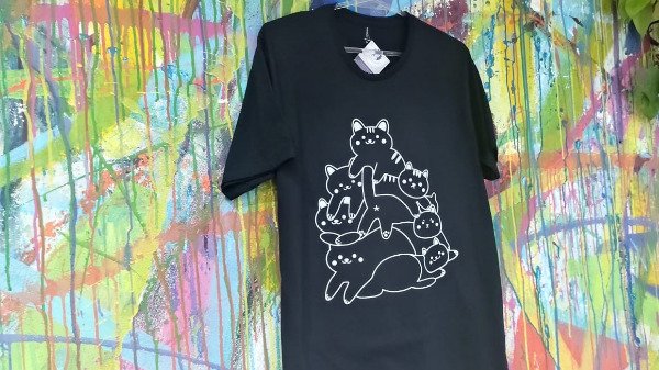Serigrafía plastisol a 2 colores ( blanco y tinta glow para que brille en la oscuridad)